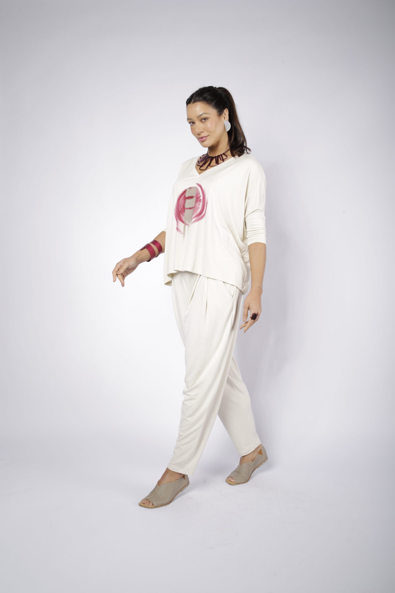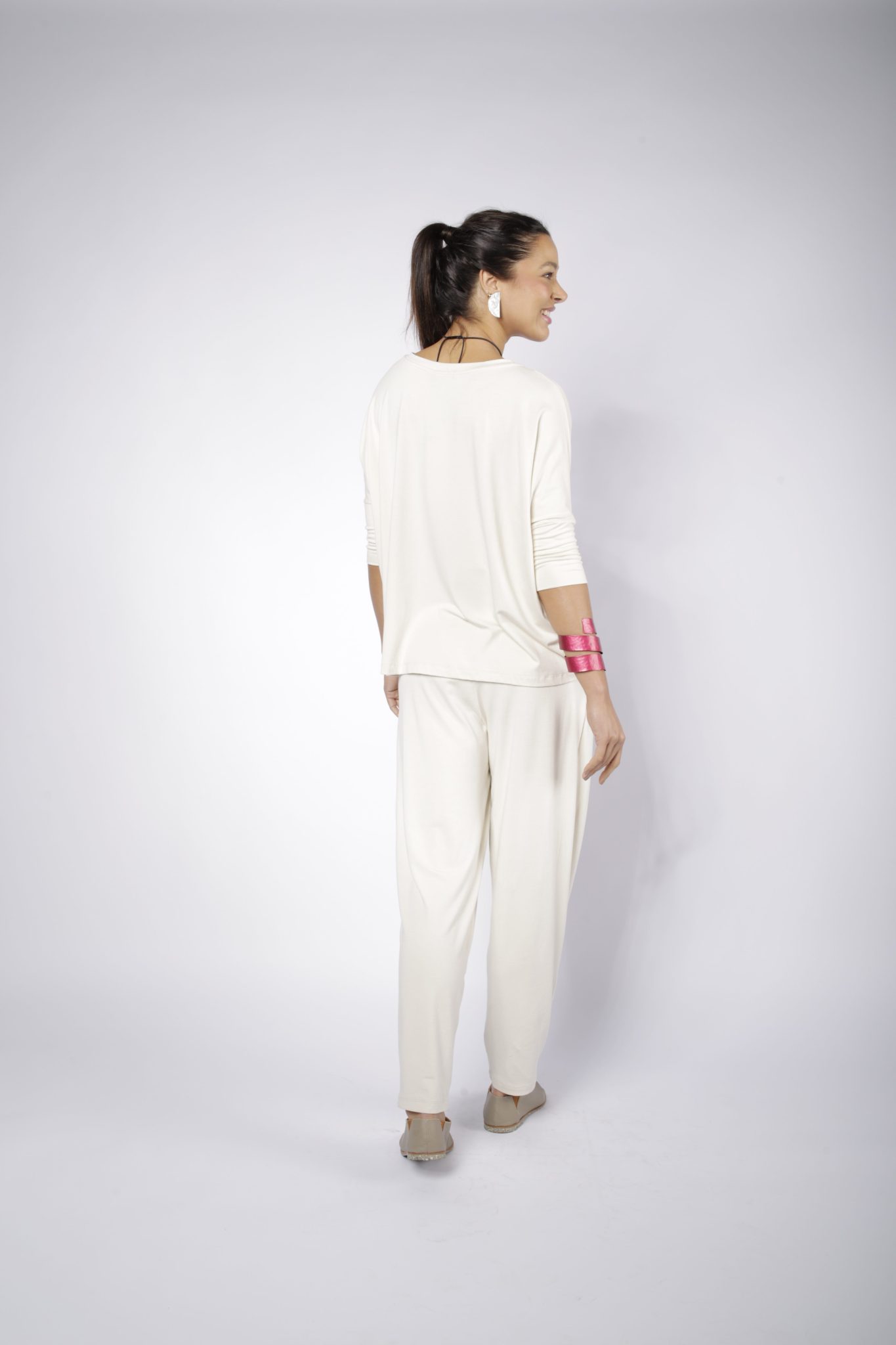 BLUSA JAPÃO EM VISCOSE E ELASTANO COM DECOTE EM V – CRU