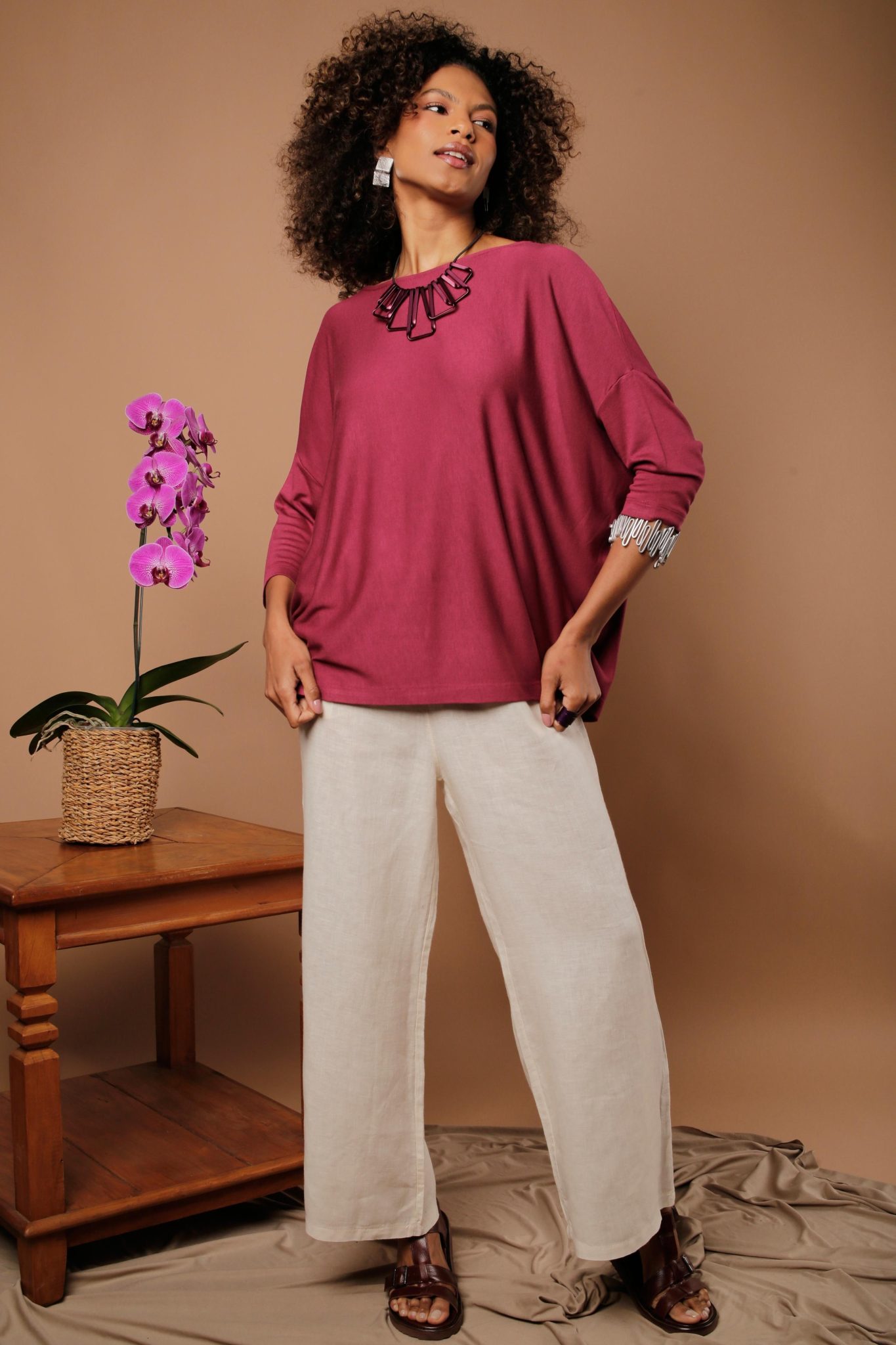 A Blusa Marina é sinônimo de conforto e elegância. Em visco tricot leve e macio. Seu design moderno conta com modelagem ampla e decote canoa, proporcionando estilo e liberdade de movimento.