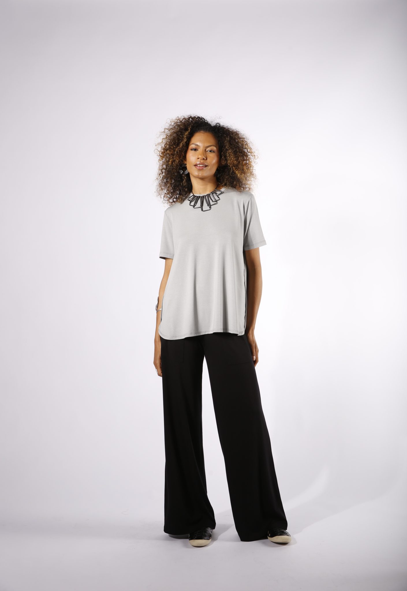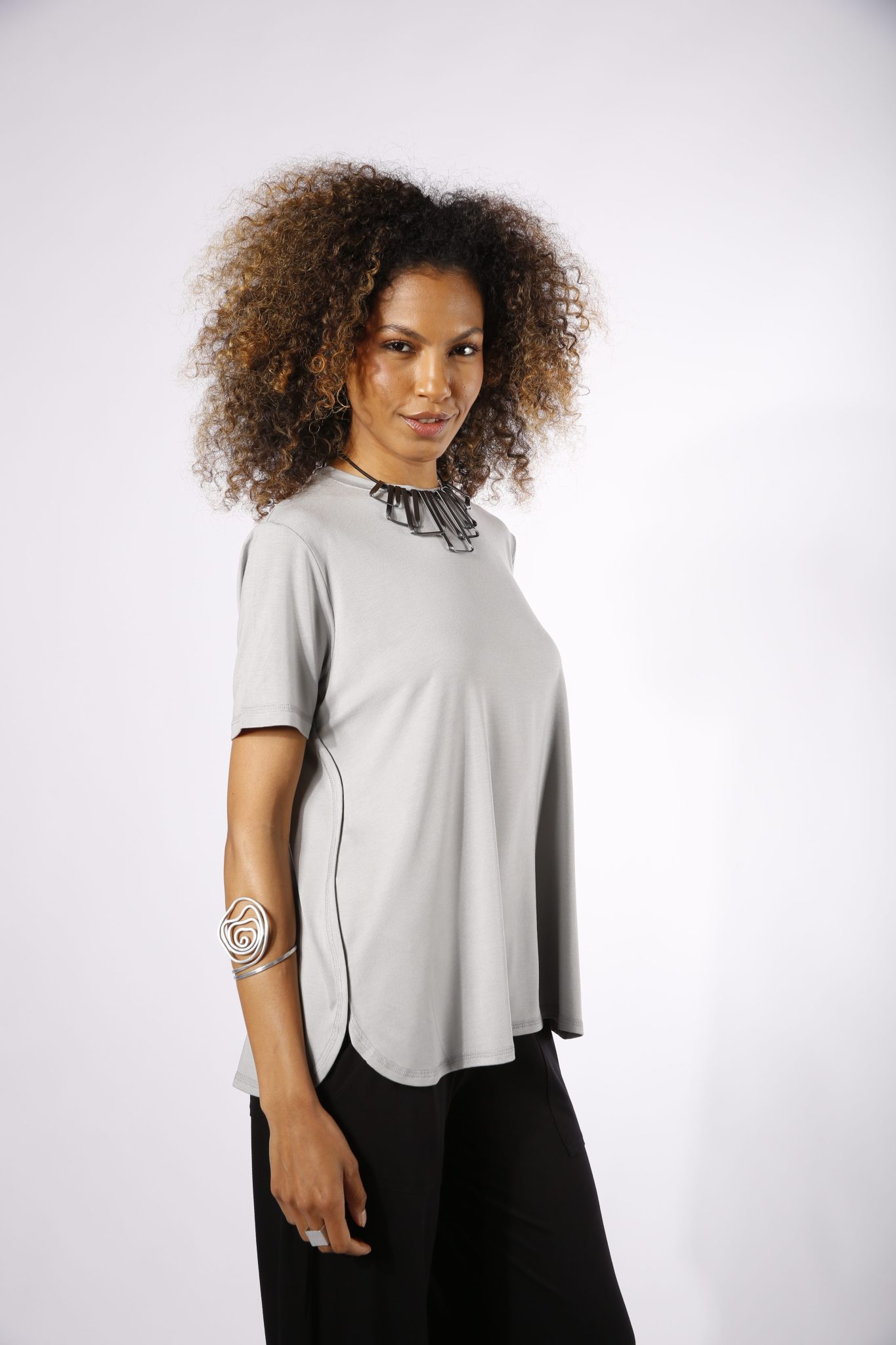 Básica, elegante e indispensável no seu guarda-roupa. A Blusa Tereza é uma peça curinga com design clean e caimento impecável, ideal para compor looks versáteis e cheios de personalidade. Possui modelagem reta levemente solta, gola redonda e mangas curtas – perfeita para usar sozinha ou como base em sobreposições.