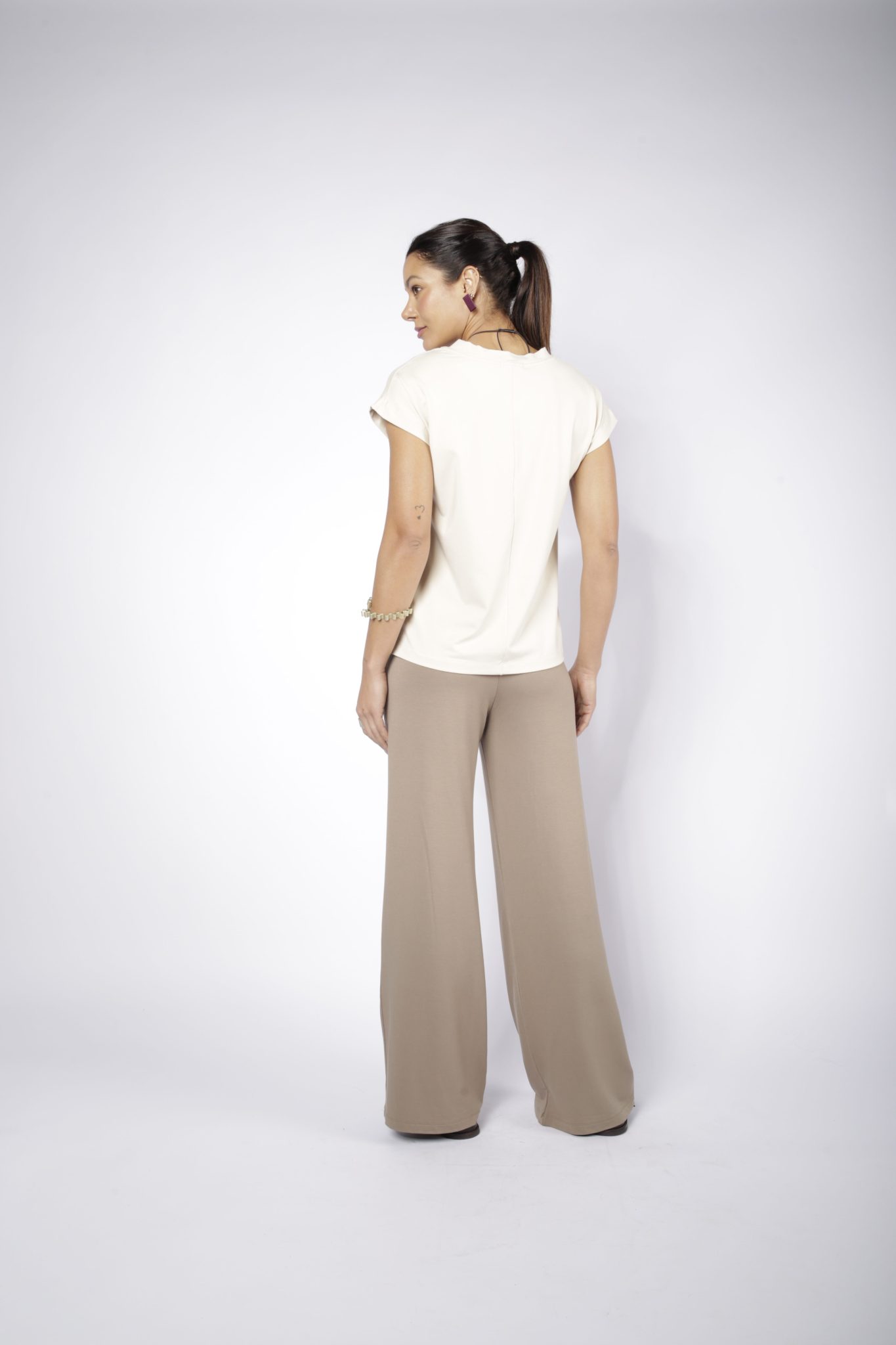 Blusa Viena feminina em viscose com elastano, modelo com manga curta e decote em V.