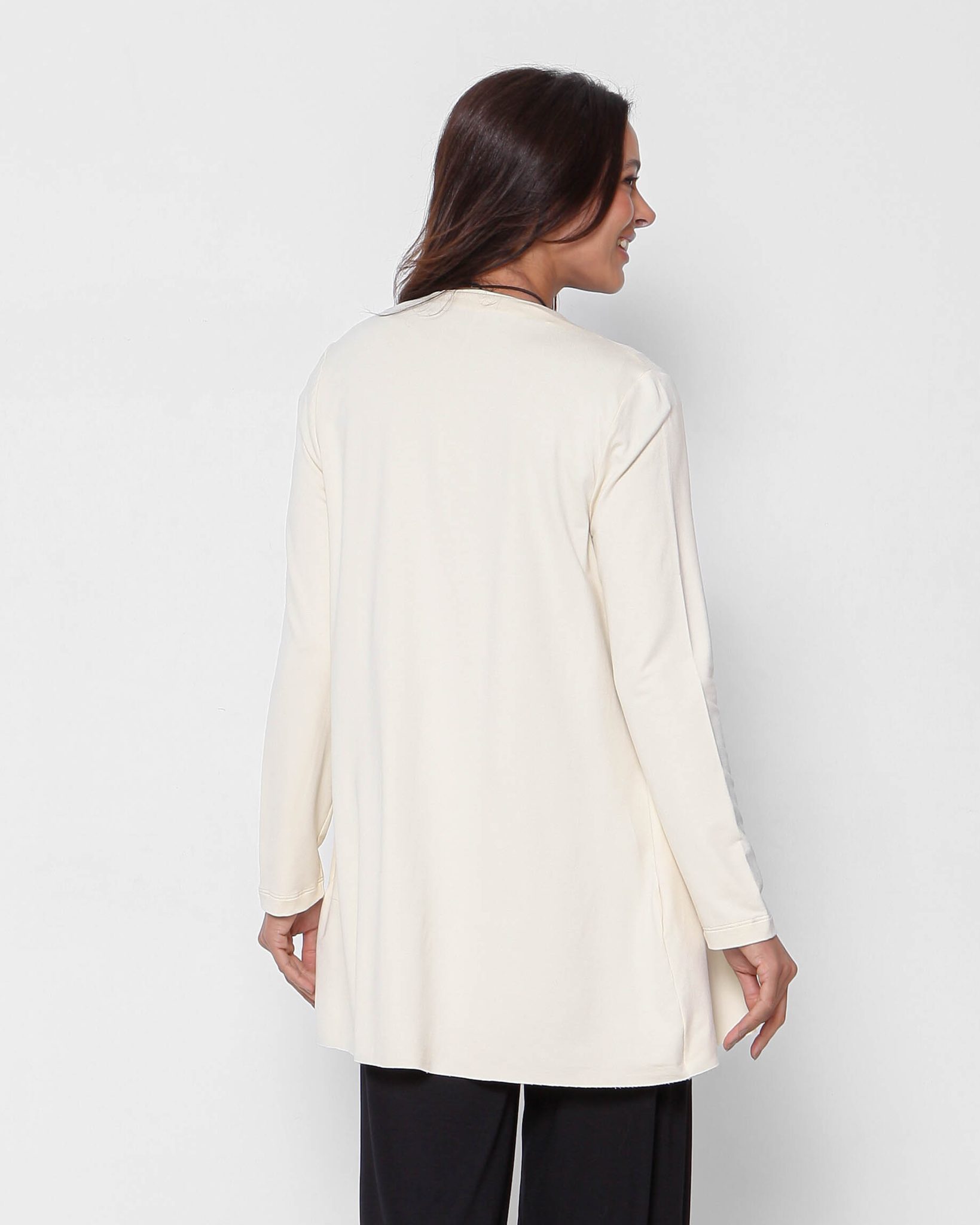 CASACO FEMININO COM BABADOS EM MALHA – OFF WHITE