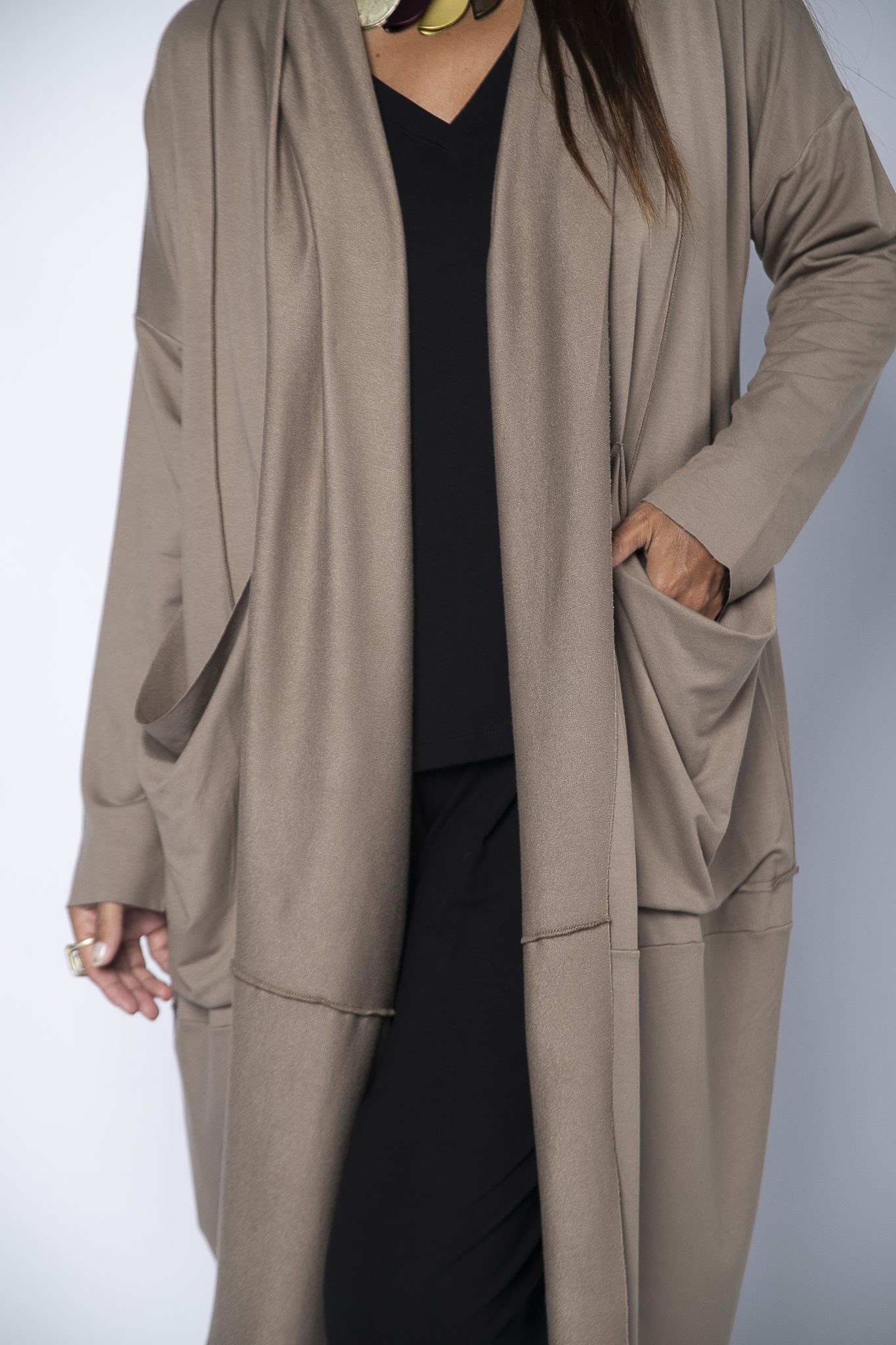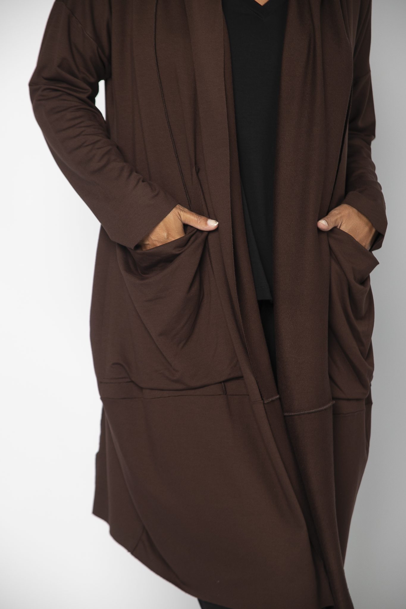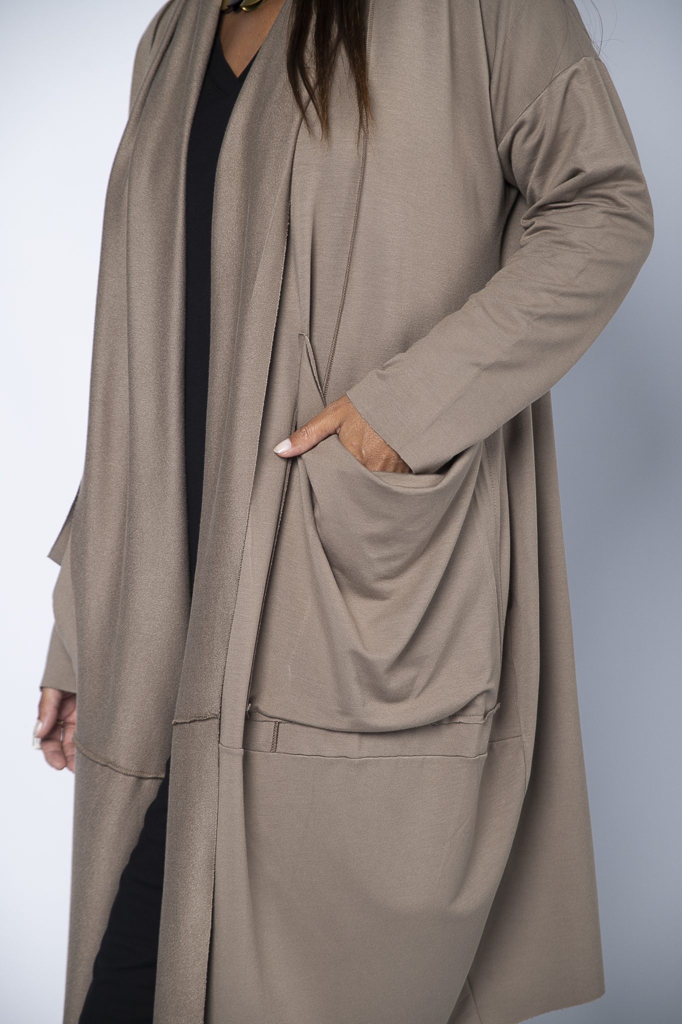 Casaco Feminino em Malha com Bolsos Manga Longa