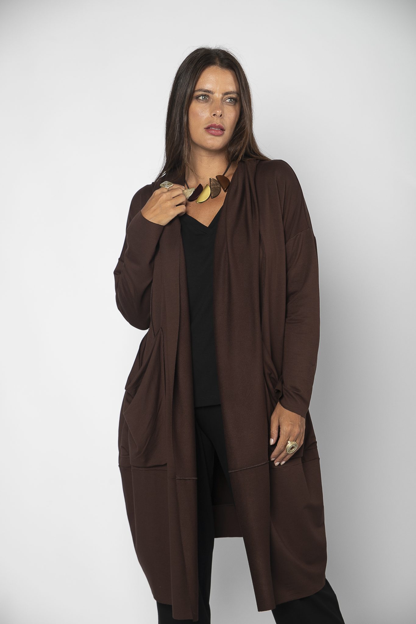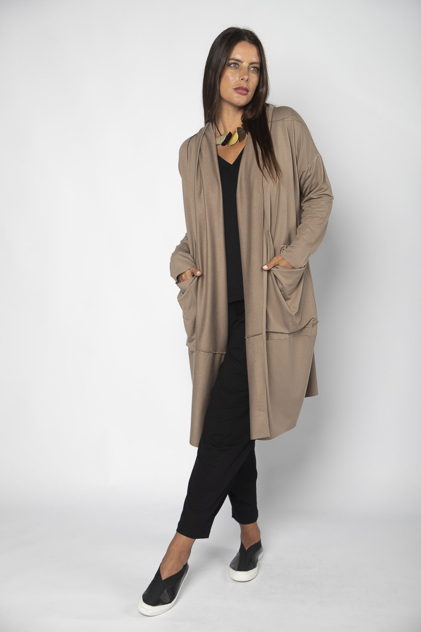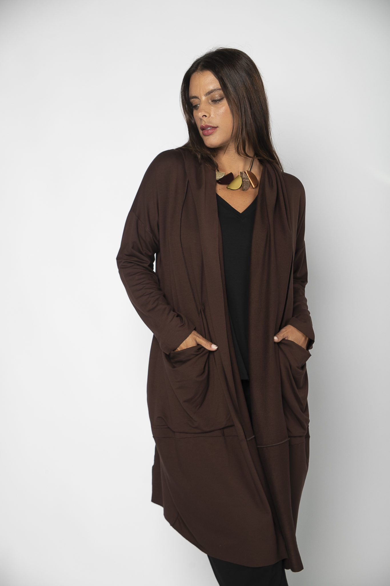 Casaco Feminino em Malha com Bolsos Manga Longa