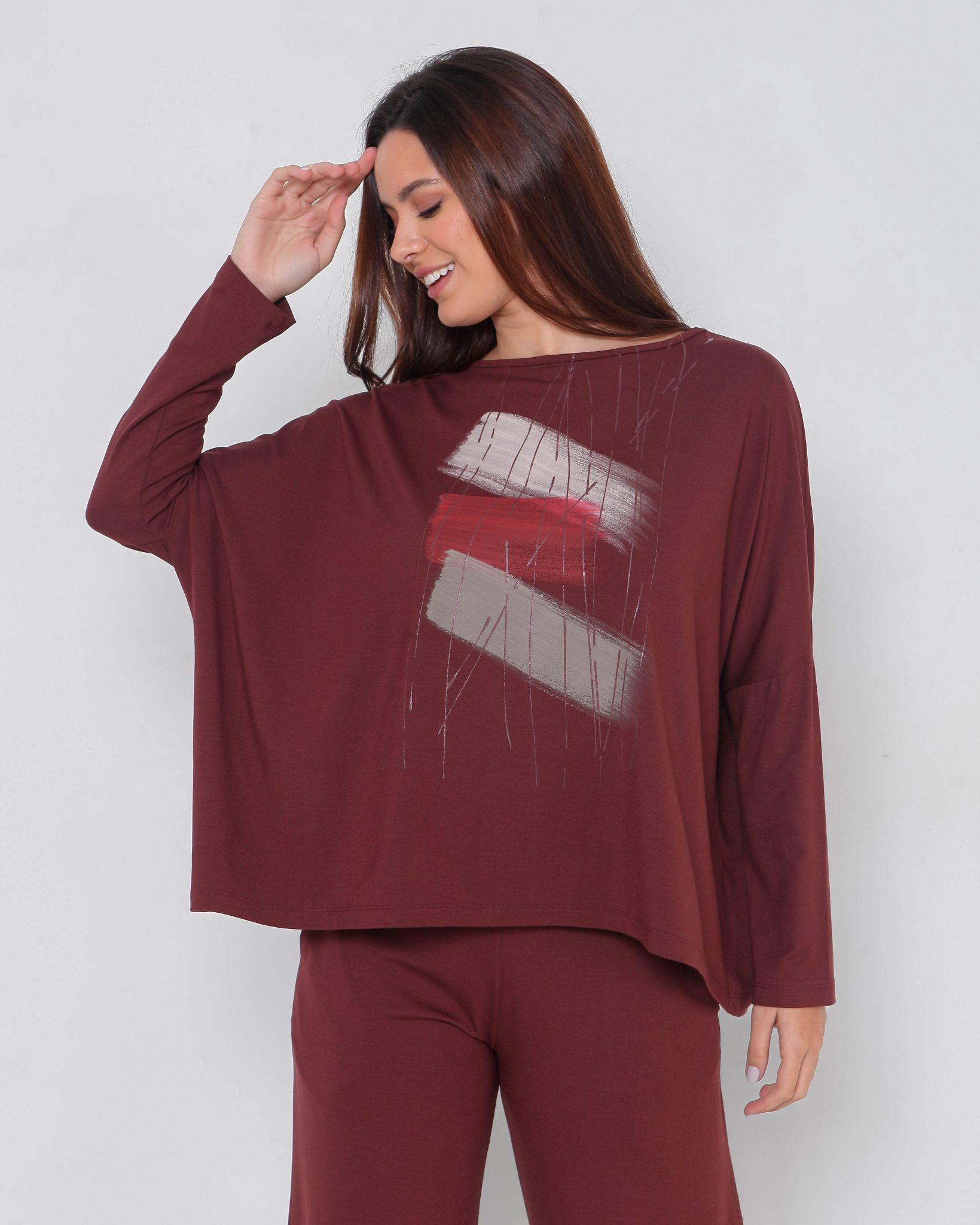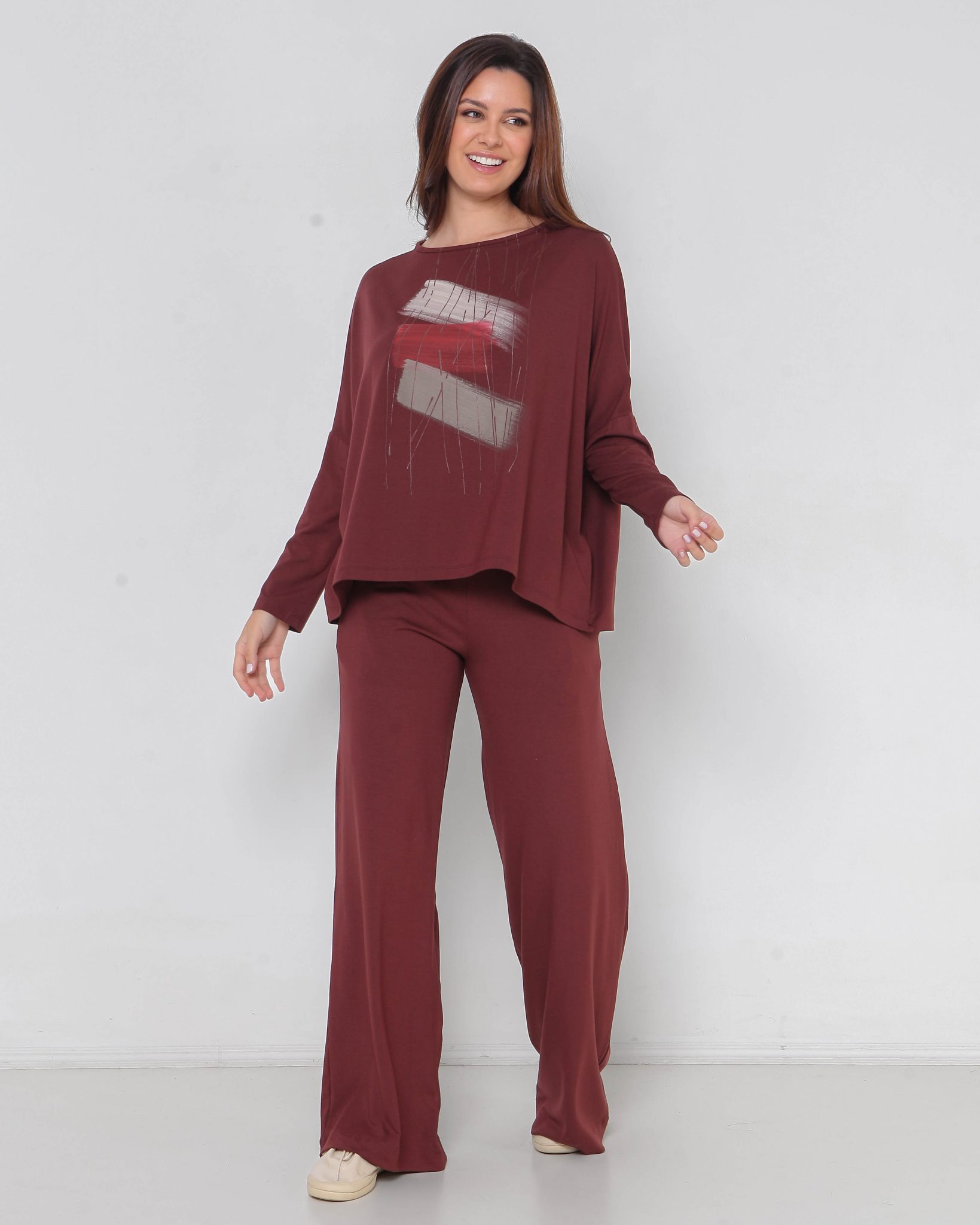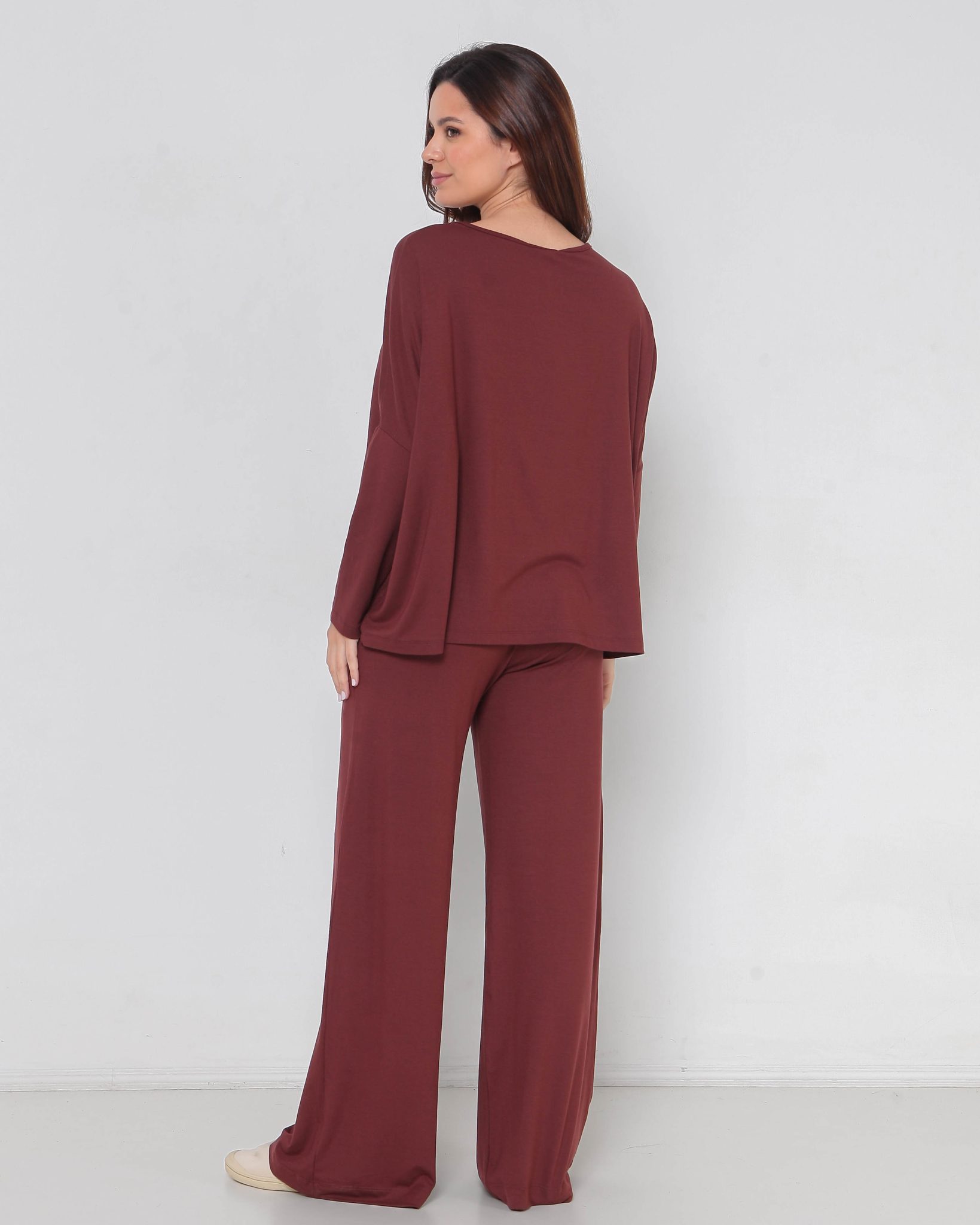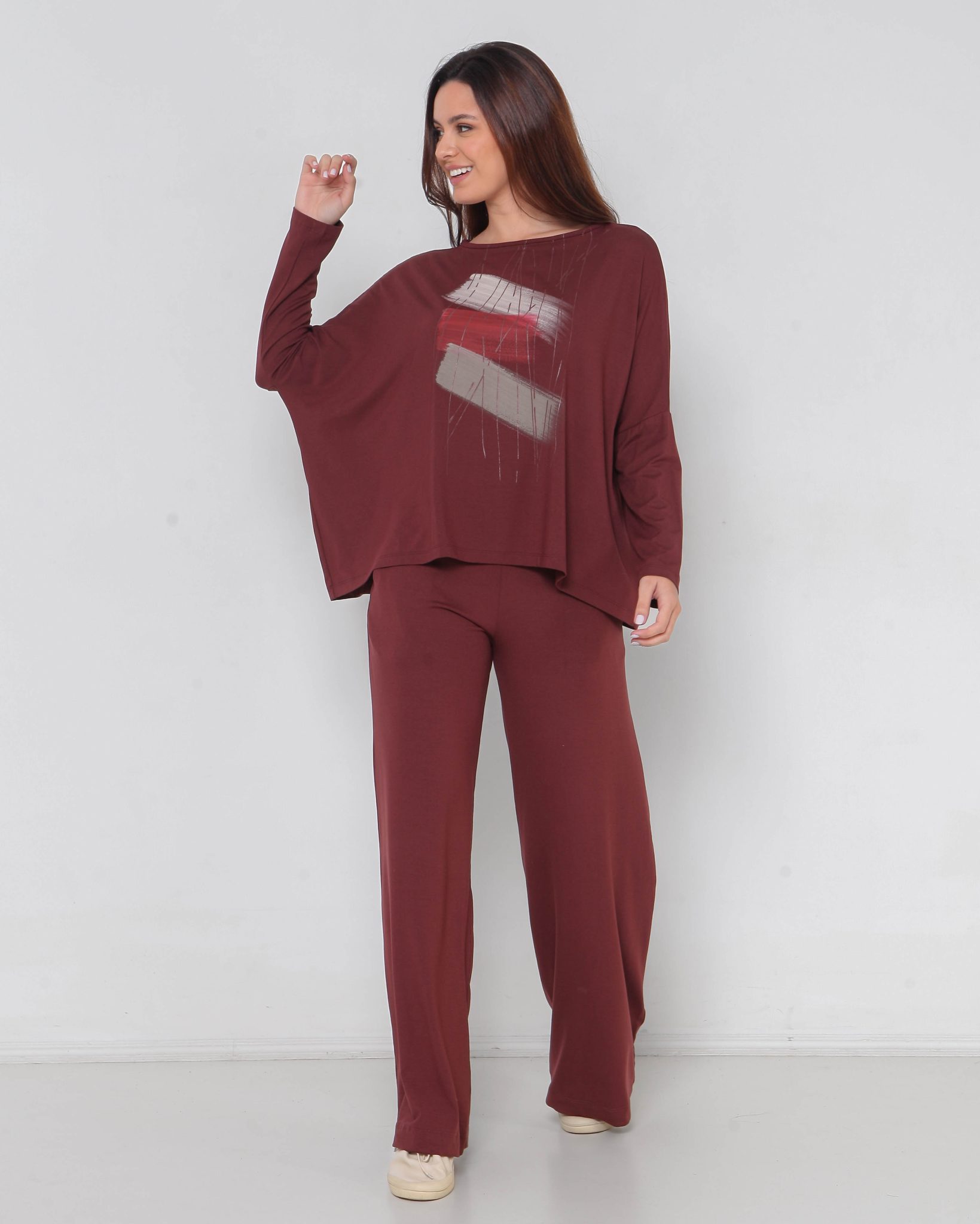CONJUNTO JAPÃO EM VISCOSE COM ELÁSTANO, ESTAMPA ARTESANAL EXCLUSIVA DA MARCA – MARROM