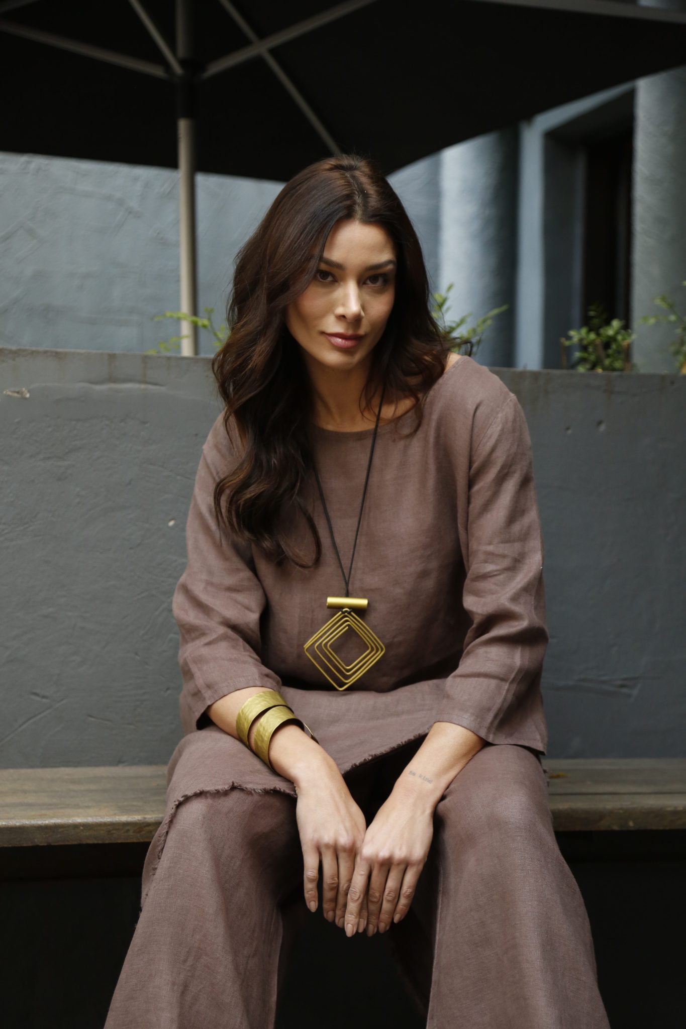 CONJUNTO TUNICA EM LINHO COM MANGAS LONGAS