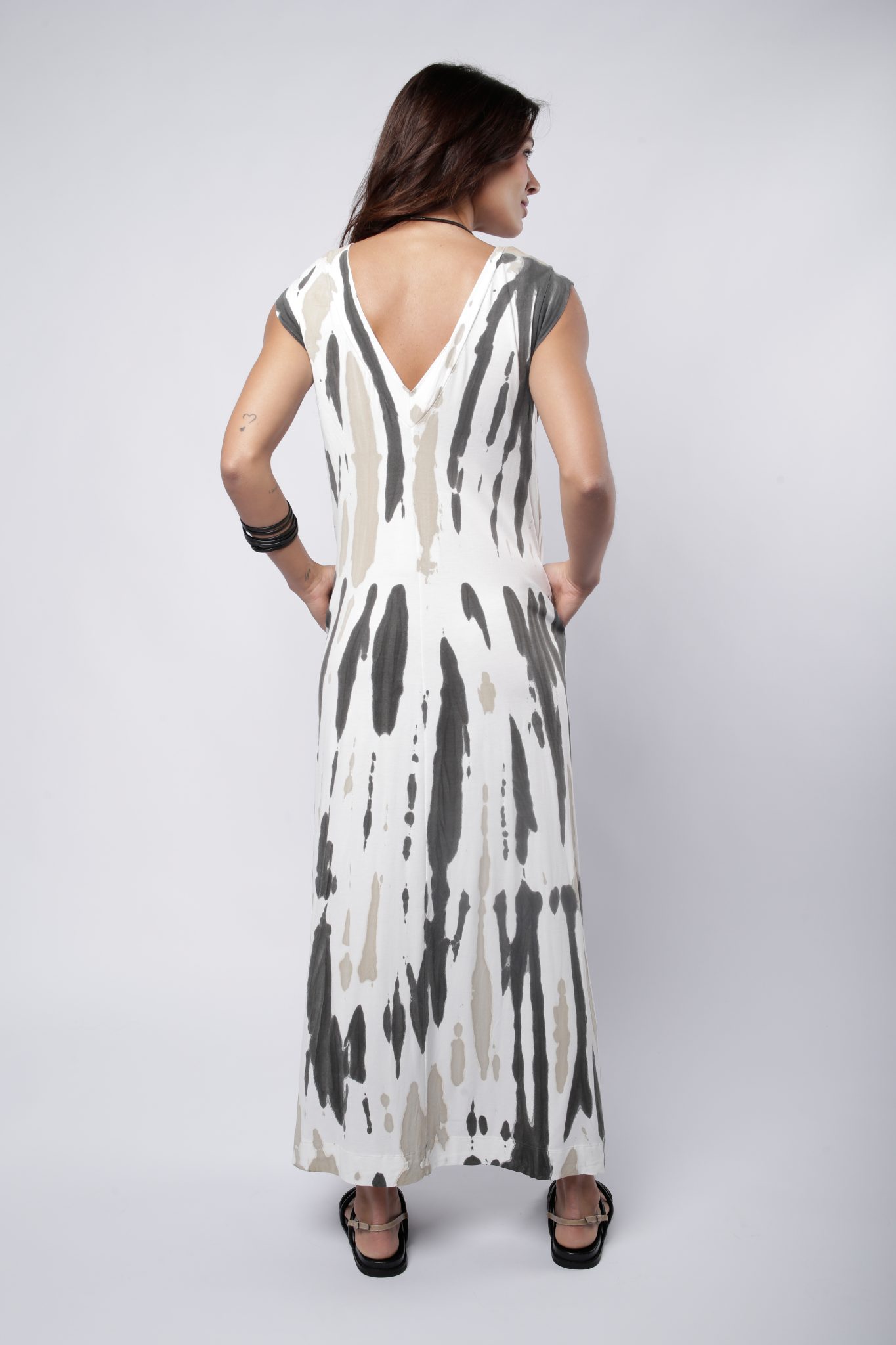 VESTIDO BÚZIOS EM VISCOLYCRA BOLSOS NAS LATERAIS SEM MANGA – OFF