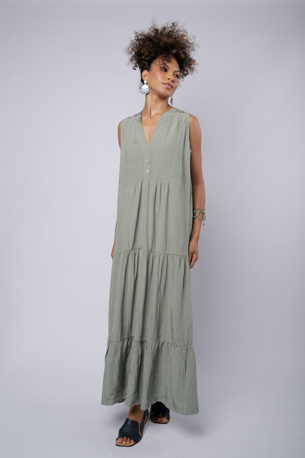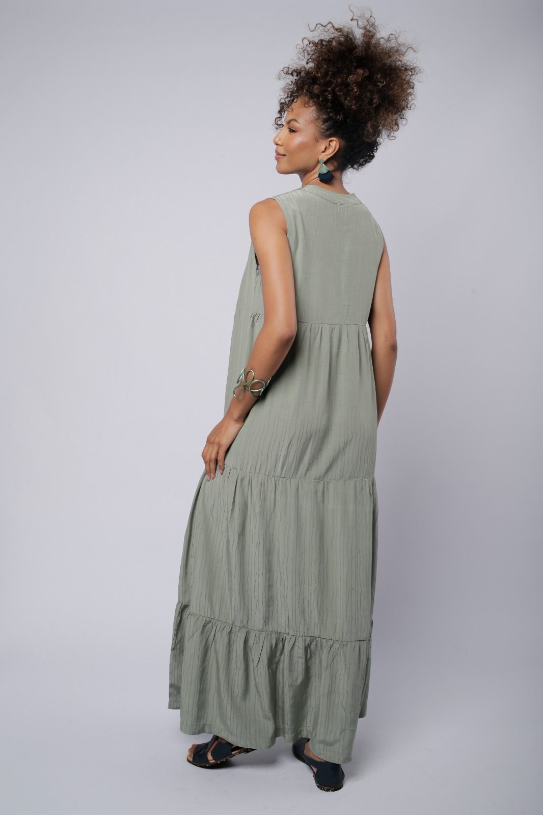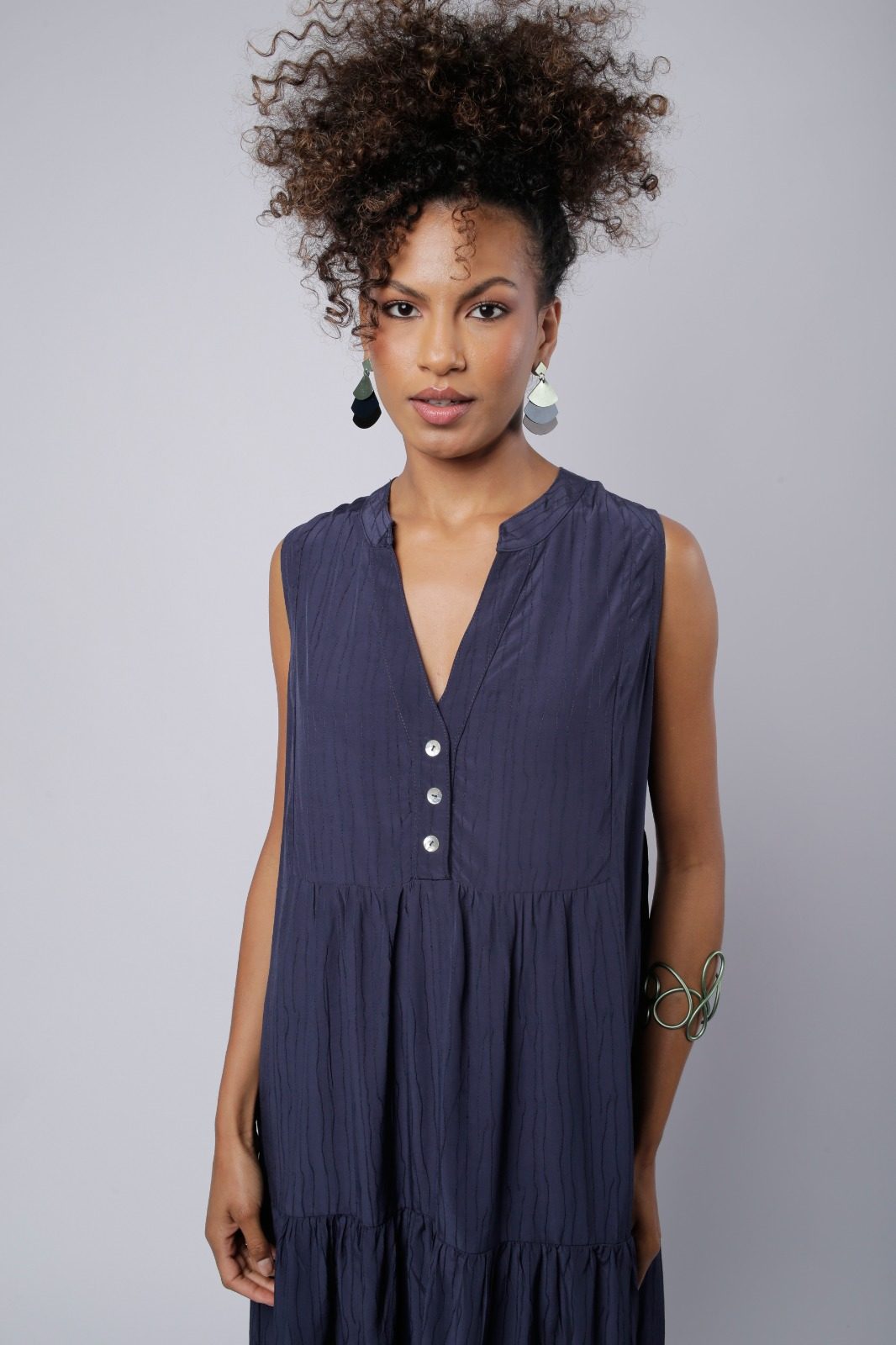 O Vestido Elis, ideal para ocasiões casuais e descontraídas. O destaque do modelo fica por conta dos babados delicados, que adicionam movimento e feminilidade à peça, criando um visual mais fluido e cheio de charme. O decote em V é elegante e alonga a linha do pescoço. Sem mangas, o vestido é perfeito para os dias mais quentes.
