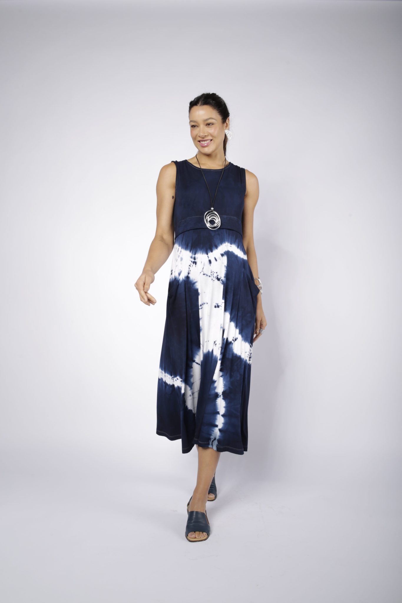 VESTIDO FEMININO HOLANDA EM MALHA SEM MANGAS – AZUL