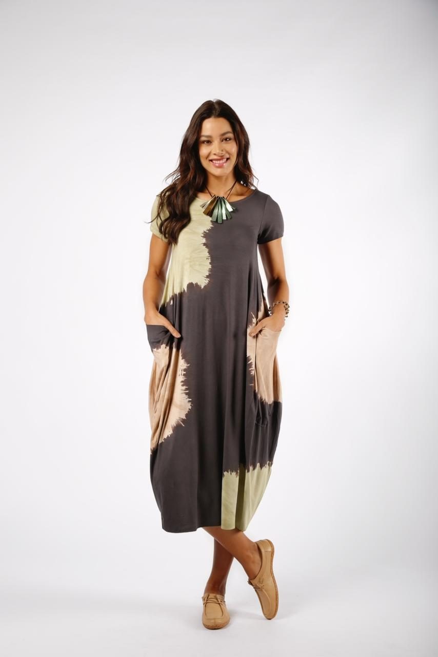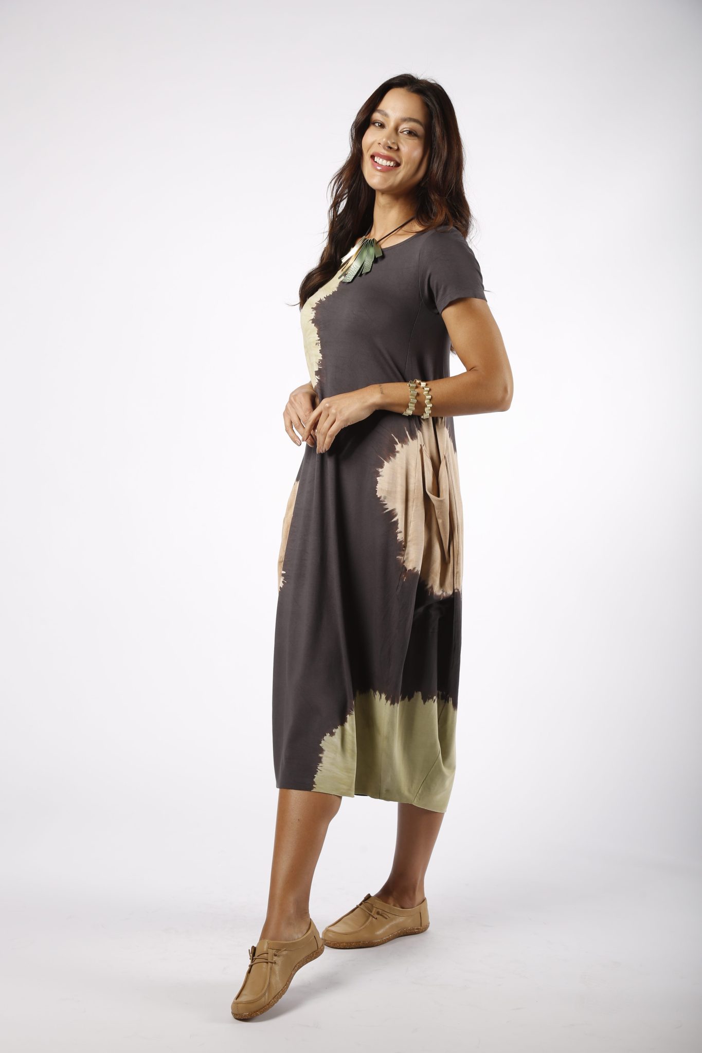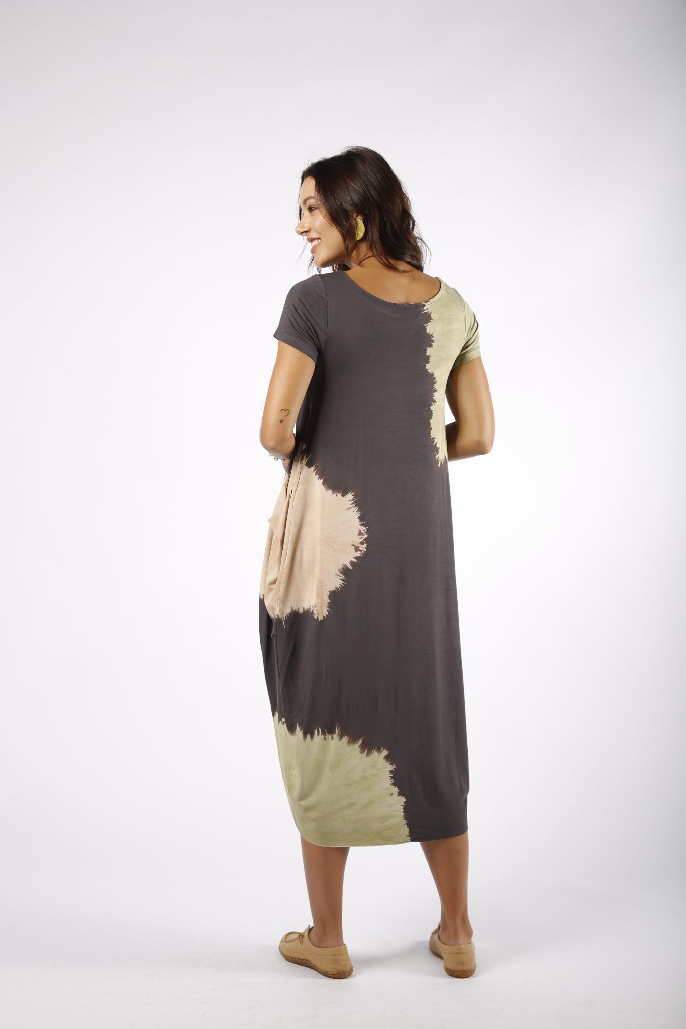 VESTIDO ITALY EM VISCOSE COM ELASTANO ESTAMPADO MANGA CURTA E COM BOLSOS – GRAFITE