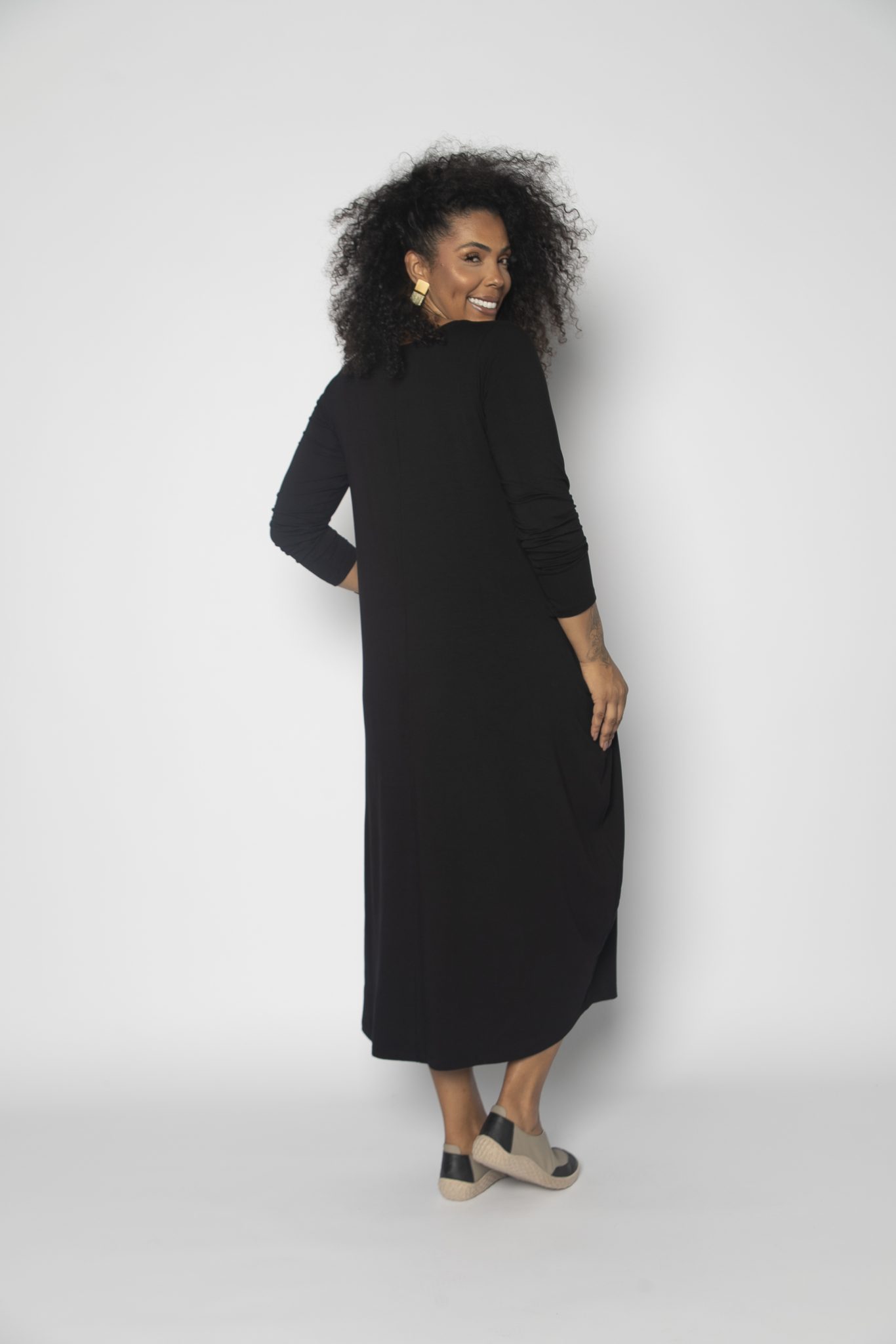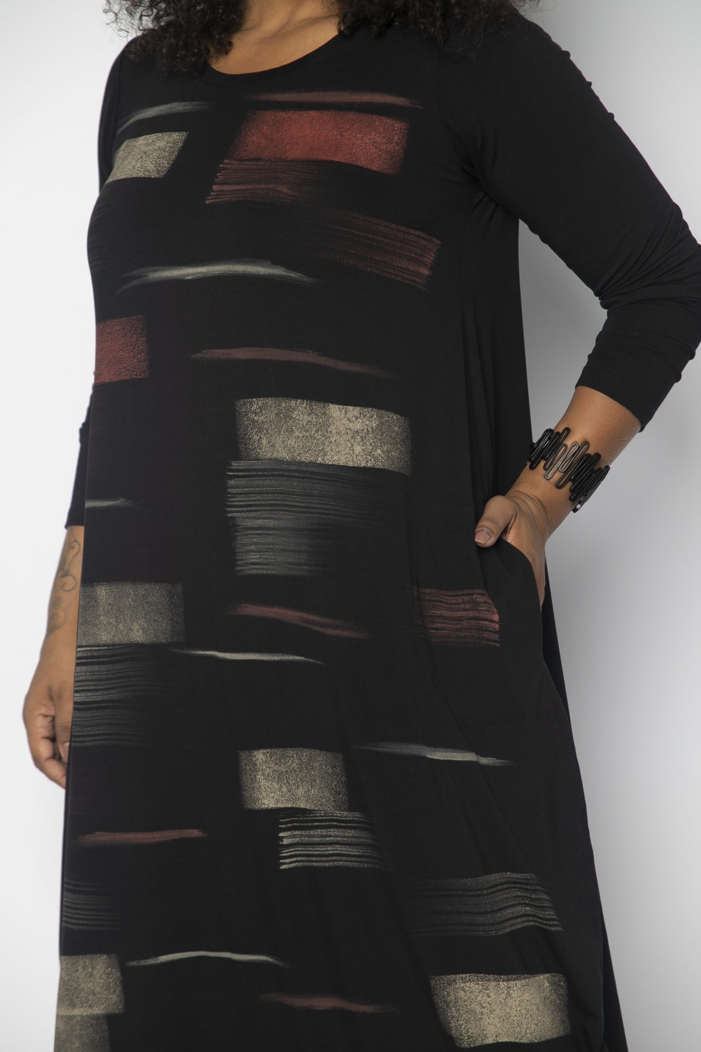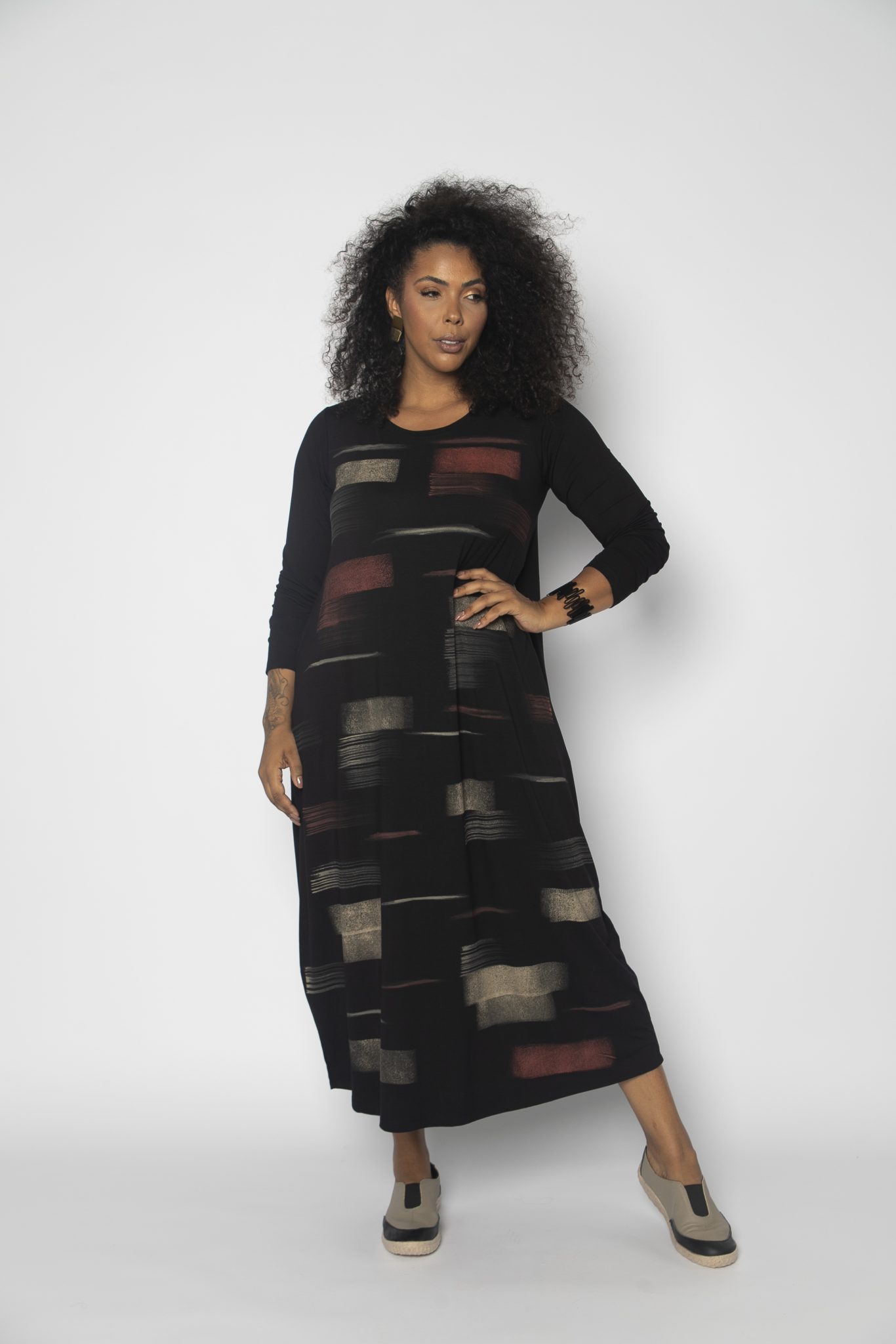 VESTIDO STREET EM VISCOLYCRA BOLSOS NAS LATERIAS MANGA LONGA E ESTAMPA EXCLUSIVA – PRETO