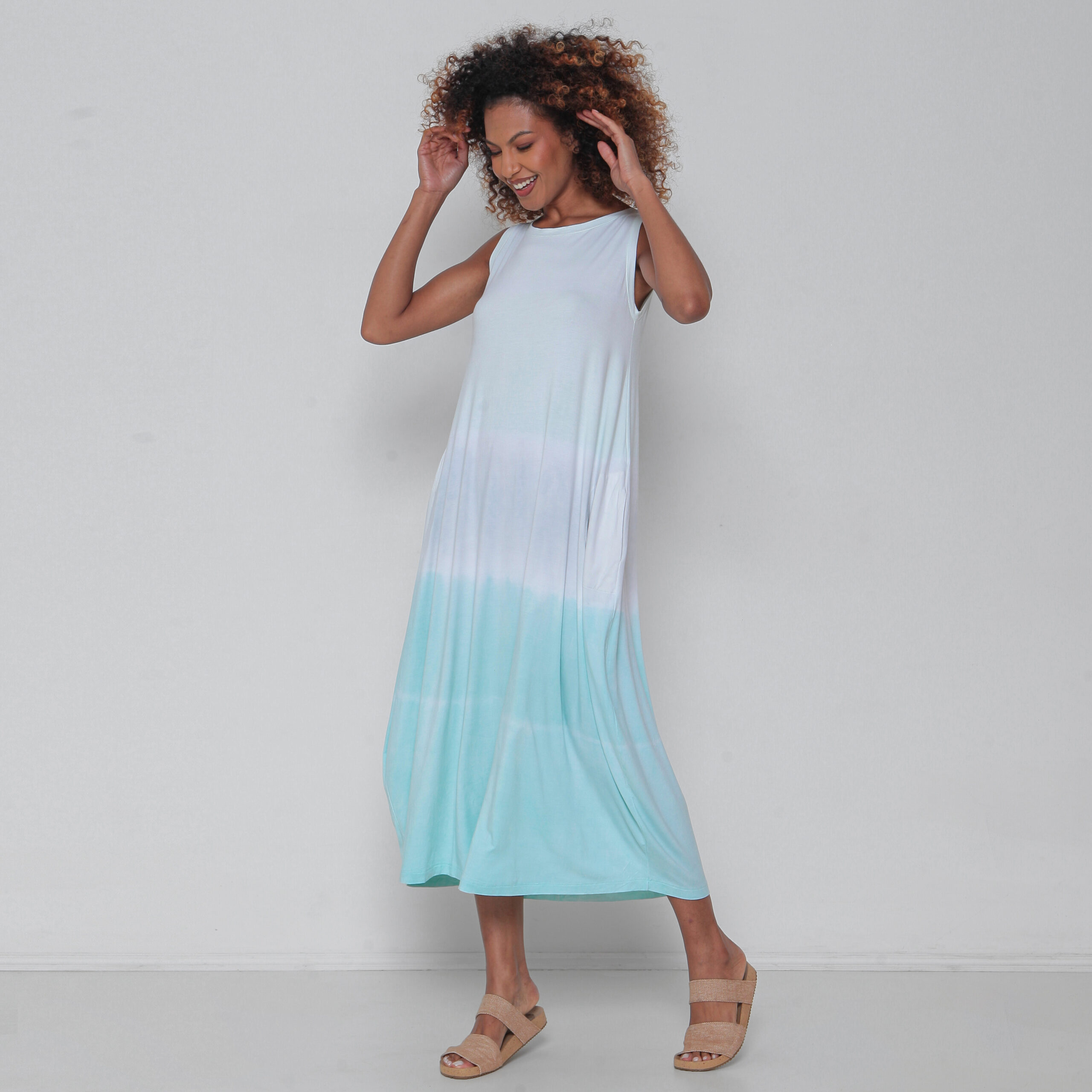 VESTIDO STREET EM VISCOSE E ELASTANO BOLSOS NAS LATERIAS SEM MANGAS – VERDE CLARO